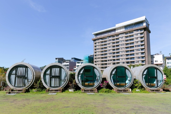 如果不想住露營車,還有超圓潤可愛外型的「水管屋」可供選擇,水管內有鋪上榻榻米,營造出簡單卻又不失質感的療癒空間,是網美必拍的新打卡處喔!