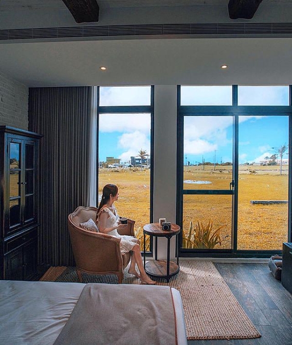 二樓房型都有私人景觀陽台,外面也有設置桌椅,讓來住宿的旅客享有優閒的空間,大片草原配上藍天大海,這趟旅行值了!