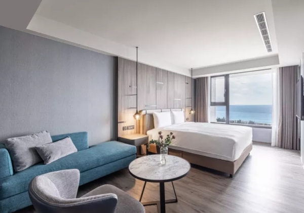 低調奢華的房內設計,大坪數套房的私人空間,提供放鬆無壓氛圍,面窗緊鄰太平洋海景,享受美好的私人時光。
