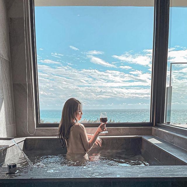 泡澡即可眺望一望無際海洋,吸引不少旅客,也是熱銷房型之一。