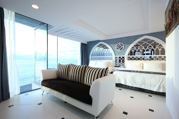 居高臨下的無敵海景,可以一邊泡澡一邊看海的浴缸,擁有私人陽台,不受干擾的,亨受這獨有的浪漫,房內還有沙發床跟抱枕,可以很慵懶的躺在這裡看海,很舒服的享受美景。