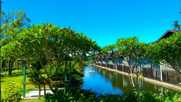 check in之後再走去水上星空小木屋的路上,在近水樓台軒會看見椰林飄逸,涼亭微風煦煦吹過,帶來峇里島式的渡假風情!