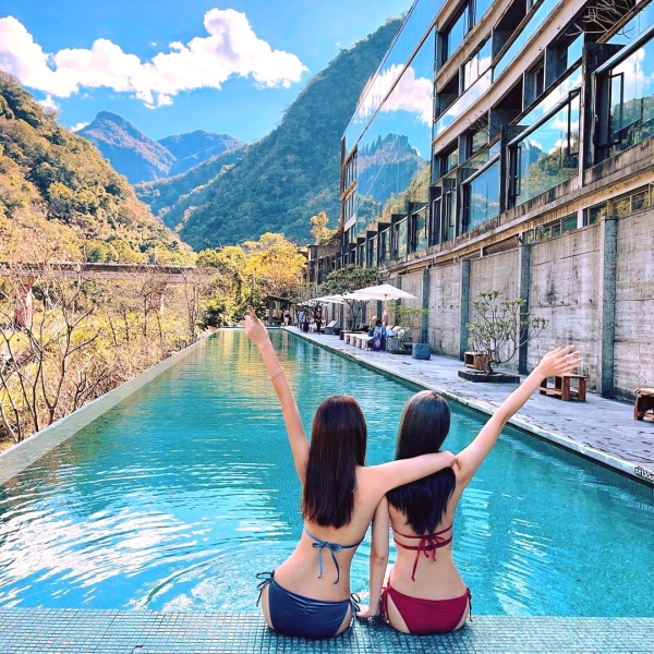 泰安觀止最著名的打卡點,就是它的零死角無邊際山景泳池,這裡可以一邊欣賞山中秀麗景緻,一邊玩水~