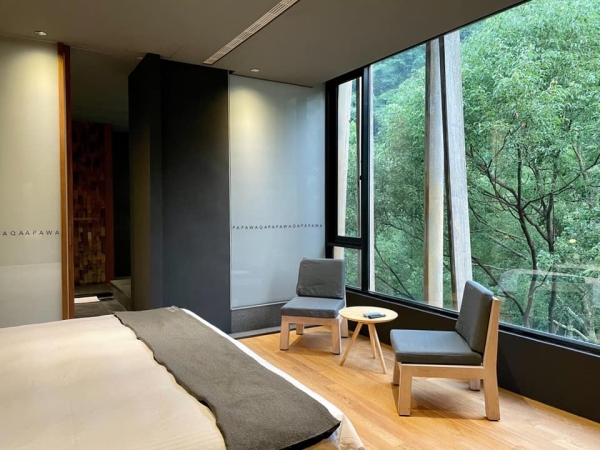 泰安觀止是位於苗栗的一間頂級溫泉旅館,外觀建築以自然元素為主題設計,以樹枝、石頭及木材為主要材料共構而成,屬於非常具有特色的環保綠建築~