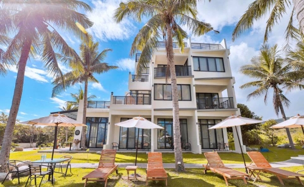 純白色的外觀建築,搭配藍天白雲和綠色椰子樹,彷彿來到了國外熱帶海島~但其實這是位於台11線旁,擁有都蘭灣海景與山景的台東海景民宿!