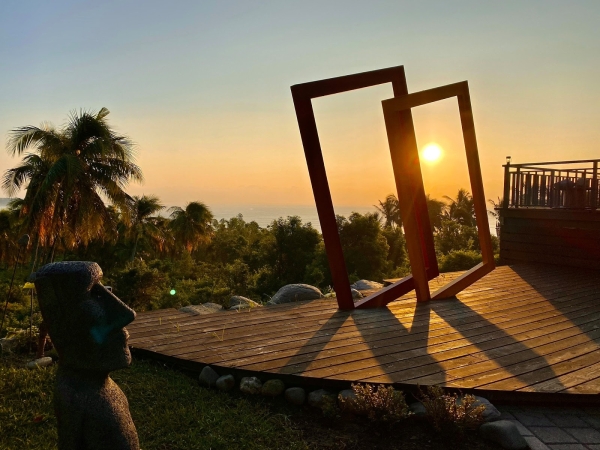 民宿外有多個景觀藝術,搭配落日夕陽及海景,看著就彷彿身處國外度假!