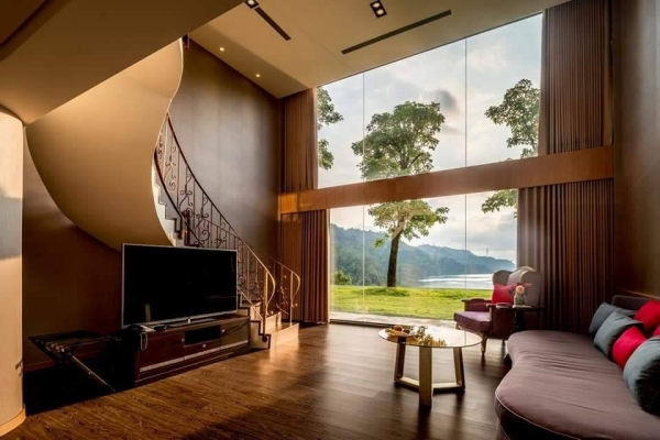 房內最大的特色就是,付有大落地窗,每一間都擁有面湖風景,可供旅客一覽無遺的觀賞。