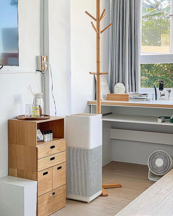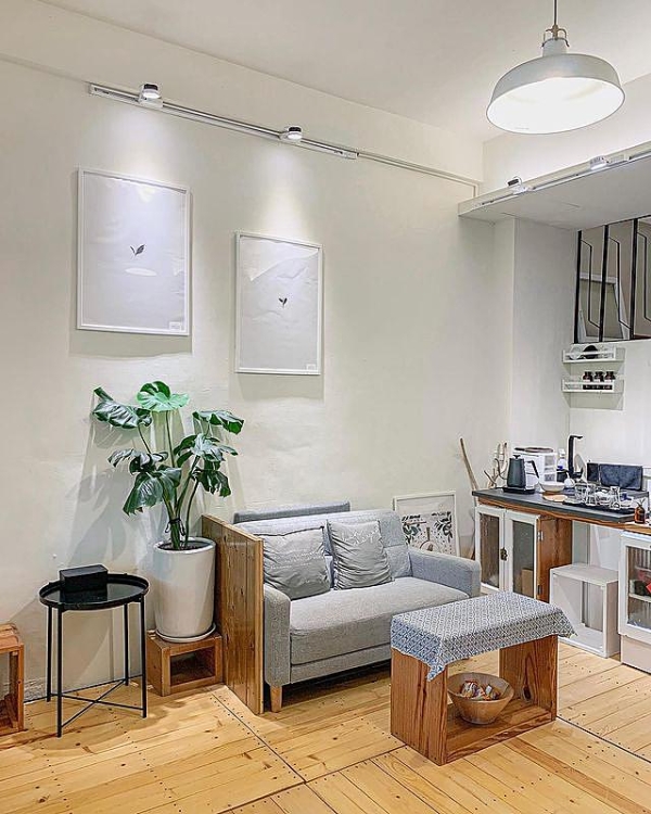 沙發區、落塵區用全新的木棧板去隔開,木棧板還是民宿主人特別設計客製的大小,十分清新。