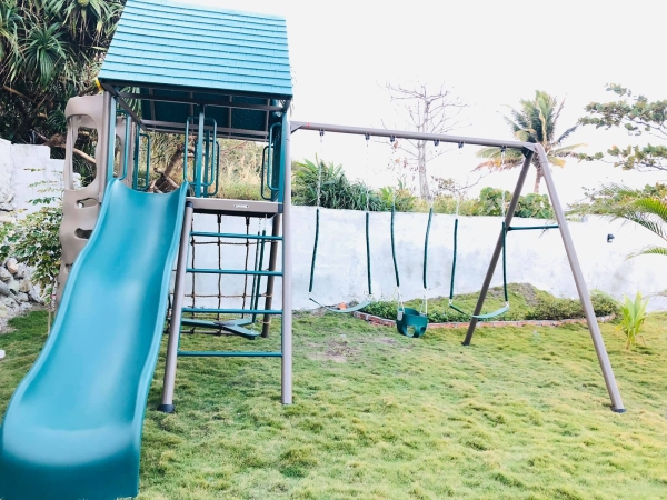 園區內還有鞦韆跟溜滑梯及白沙坑供孩子玩耍!