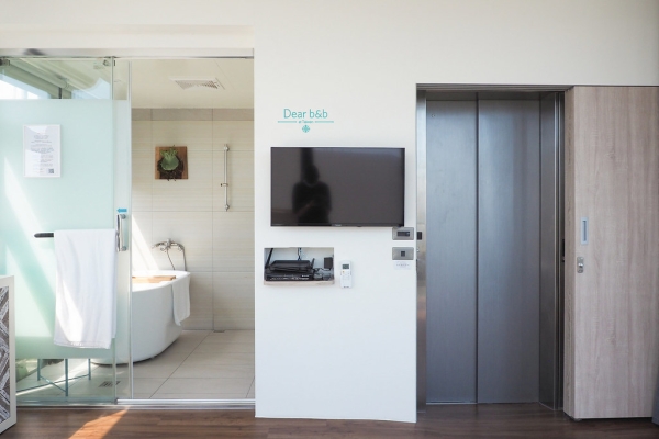 寗夏看海房間設計是電梯直達,電梯一打開就是房間,完全沒有走道,但電梯外還有個拉門可以鎖上,所以為了避免按錯樓層的情況,進房時建議還是拉上拉門鎖~