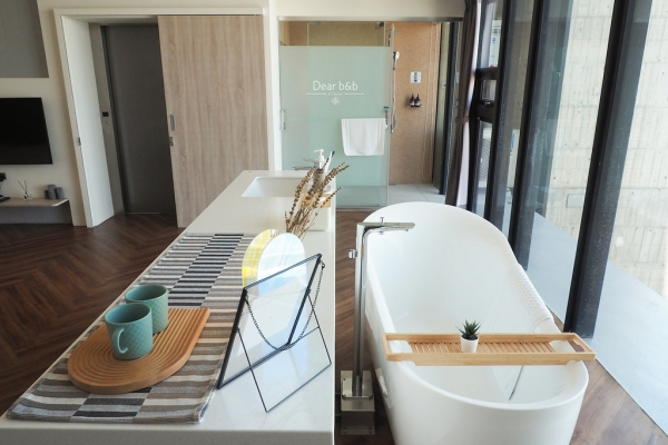 有的房型浴缸就在玻璃窗前,直接面對大海超chill~