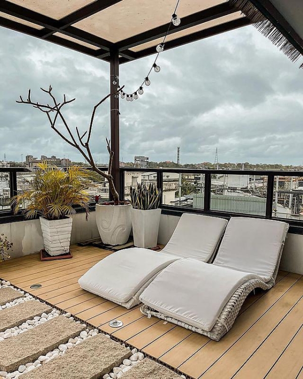 頂樓陽台的設計,放置各式盆栽造景、竹藤躺椅,彷彿置身峇里海島渡假般悠閒,遠離塵囂,慢活享受放鬆美好假期!滿滿的異國風味,也吸引不少人在此拍照,