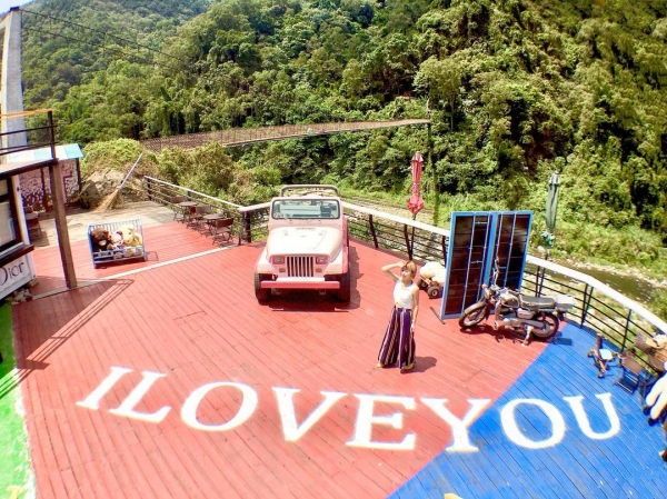 這裡可是很多新人拍婚紗會來取景的拍攝基地喔~光是粉色吉普車和超大的LOVE YOU就快被閃瞎啦!愛放閃的你也趕快揪閃光來拍拍!