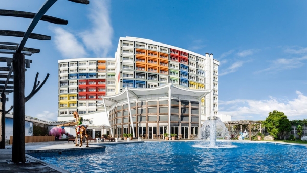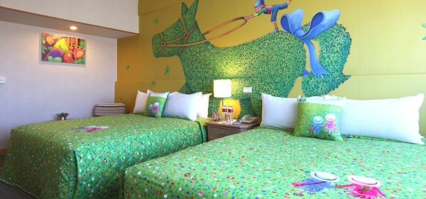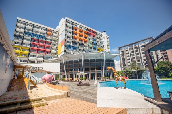 花蓮翰品酒店外觀像是被彩色的積木點綴,距離花蓮港較近,飯店隨處可見幾米繪本裡的擺設及彩繪~