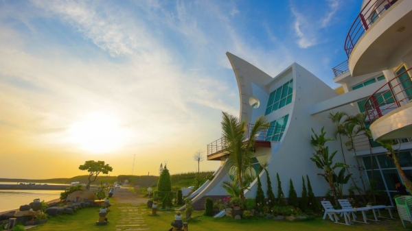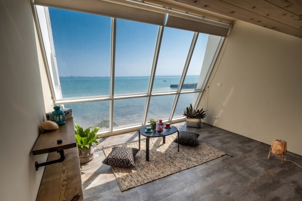 候鳥潮間帶民宿整棟建築主體,像是揚起風帆的船迎向大海駛去,附近私人沙灘原始的環境,還可以看見退潮時生態豐富的潮間帶