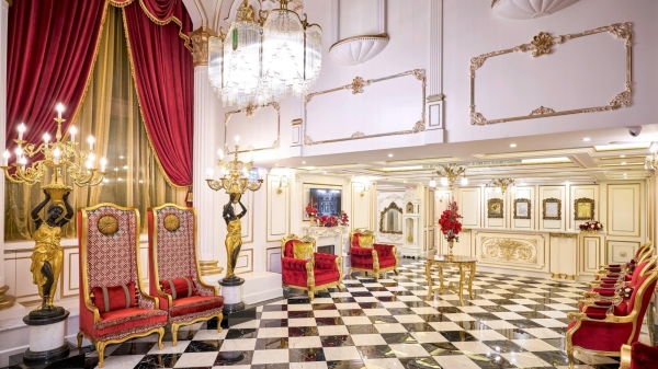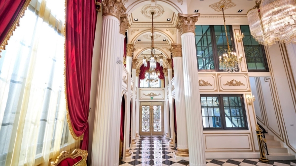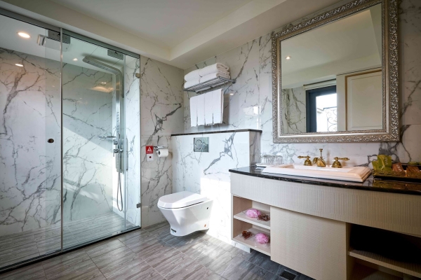 門一打開進入走廊時就會被眼前景象所驚豔,白色古羅馬柱搭配高雅華貴的水晶吊燈,裝潢超貴氣!