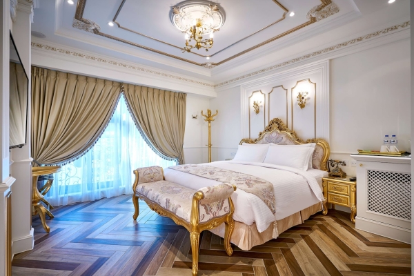 皇后古堡飯店房型有五種可以挑選,每間房間都是以歐洲皇室貴族為主題下去做設計~
