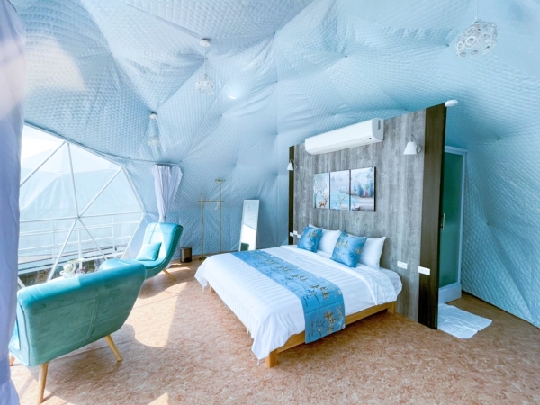 篷內設備齊全的像是來到飯店一樣,冷氣及更衣鏡還有懶人躺椅及浴室,超豪華~