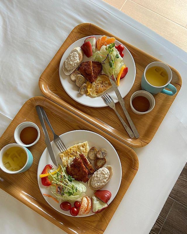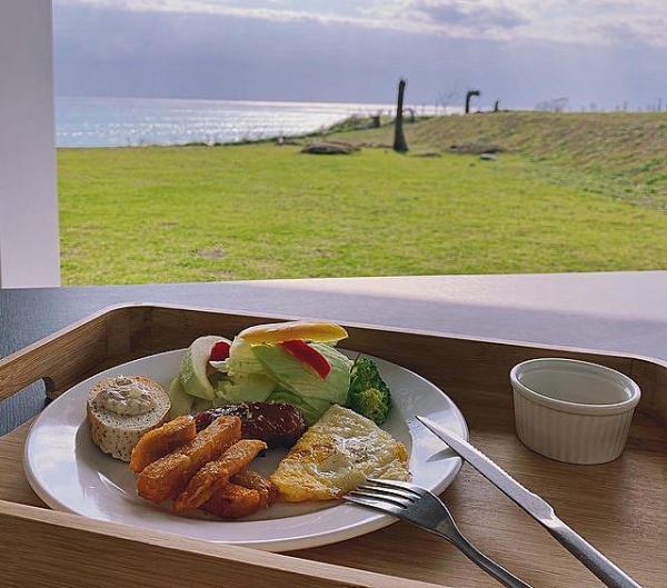 早晨醒來,享用民宿供應的早餐,搭配著藍藍大海與大草原景觀視野,真的絕配!