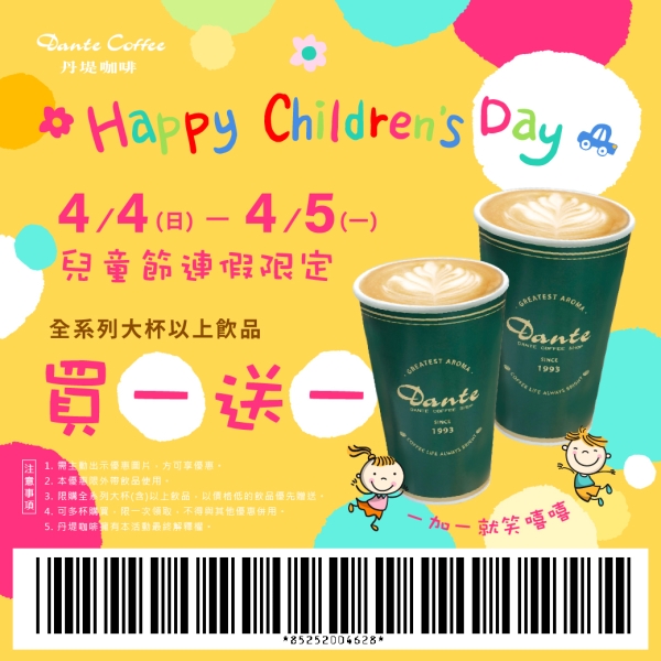 丹堤咖啡於4月4日當天特別推出全系列大杯飲品外帶買一送一的優惠,不論是經典的丹堤美式咖啡或冰沙系列通通都可以!另外可可甜心鬆餅也同步推出9折期間限定優惠!