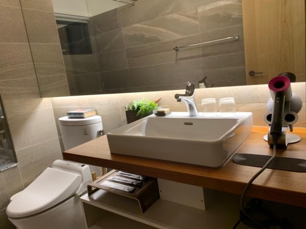 舒適的衛浴空間,一旁還附有獨立浴缸,更擁有dyson高級吹風機,帶給你最頂級的度假享受!