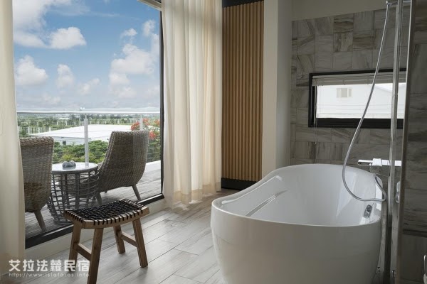 房外還有個專屬陽台,可以讓你悠閒地坐在這邊喝茶聊天,欣賞庭園泳池及南灣美景!