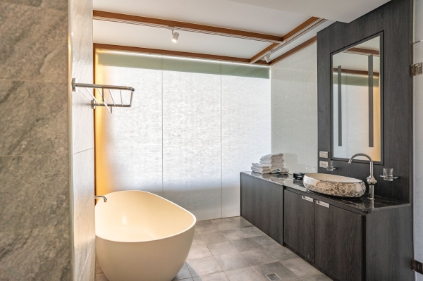 浴室採用乾溼分離,還有獨立浴缸,讓人可以泡澡舒緩一整天的疲倦。