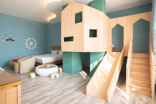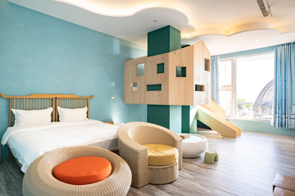 房間內還打造小型溜滑梯,爸媽休息時小孩也不會無聊~