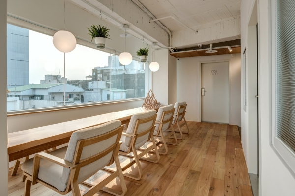 公共區域為主要交誼廳,旅客們可以在此烹煮輕食,有冰箱、烤箱、微波爐等設備都可使用,坐在窗邊還能俯瞰台中車站不同的視野!