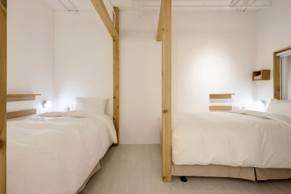不僅有單人房、雙人房還有四人房可以選擇,使用了木頭和暖光元素打造的空間,看起來有股溫馨感!