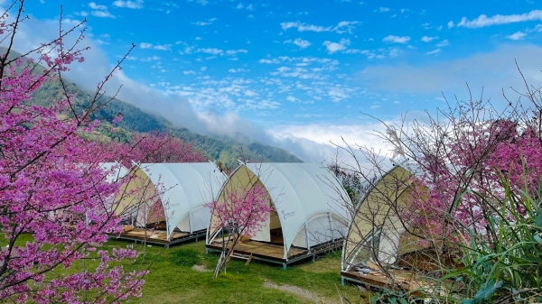・豐收地帳篷方案,櫻花林景觀,可住 2 ~ 4 人。