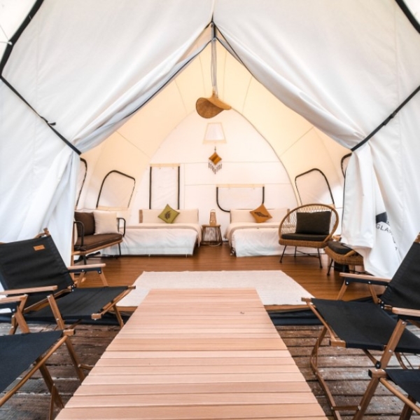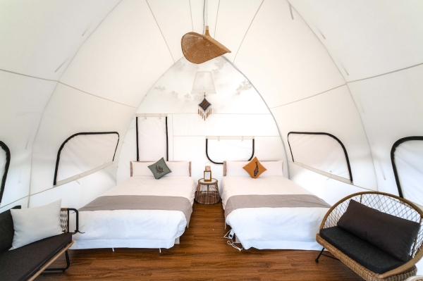 ・位於戶外空間的 5 米帳篷,內有兩張雙人床。