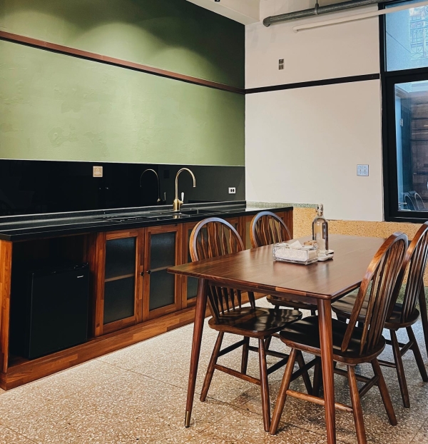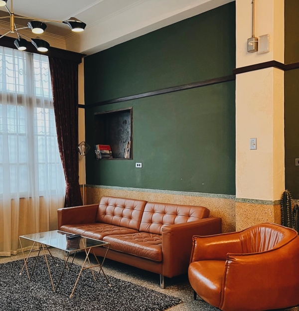 民宿的二、三樓就是客房了,牆壁上的色彩搭配充滿著復古風格,搭配上經典的摩登風皮革沙發,充滿了獨有的沈穩氣息!