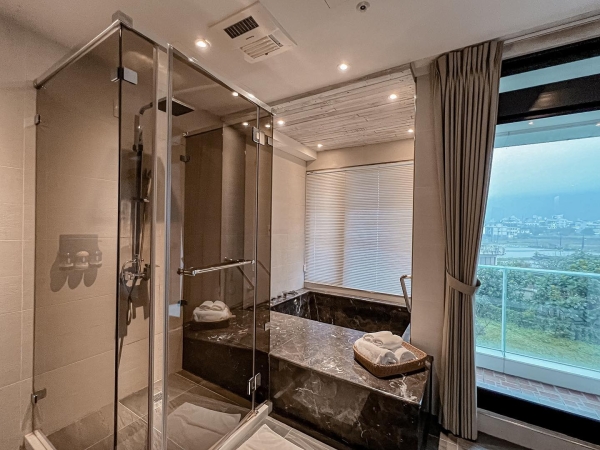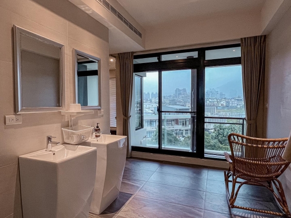 此房型是山眺雙人房,是雙人房型中最大的房間,擁有寬敞獨立的露天陽台和專屬泡湯空間,泡湯同時也能欣賞雪山山景與庭園美景,讓旅客們能盡情享受!
