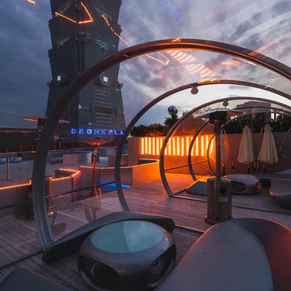 被譽為最美高空酒吧、網美必打卡景點「Drunk Play爛醉不累」,以異國風情、透明泡泡包廂及太空包廂為名,最新4/6已開放夕陽時段,天天15:00開門營業,日落時快揪團來喝一杯,賞101無敵夜景吧!