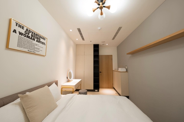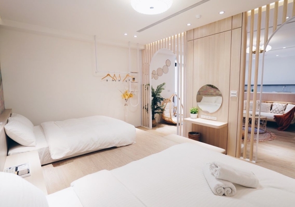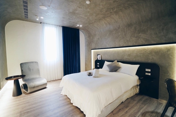 位於台南市中西區西門路上的「柒宿Seven Nights 」是今年才開幕的,旅宿裡有雙人房型和家庭房型,雙人房裡有間別具特色名為「時光隧道」的房型,室內採用了弧形設計和水泥灰色系作為搭配,就像是走進時光夢境般的感覺,再來就是擁有15坪大的家庭房,有摩登時尚、現代輕奢和波西米亞風等三種風格的主題房間!
