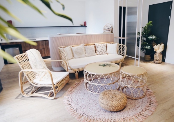 第三間波西米亞風格上使用了粉白色系和藤編家飾,兩種元素搭配在一起,視覺上充滿了國外風情,愛拍照的女孩們一定不要放過這麼好得機會喔!