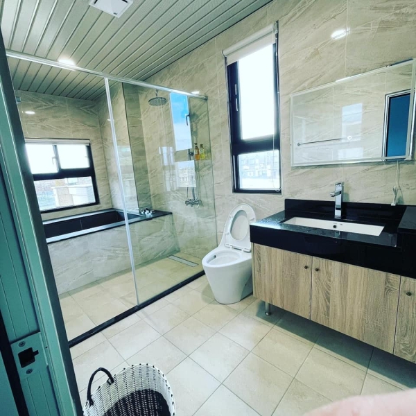每一棟有六間房,包含2間四人房、4間雙人房,最多可容納16人。且每間房寬敞又舒適,也設有空調、電視、陽台等,讓你盡情享受假期!