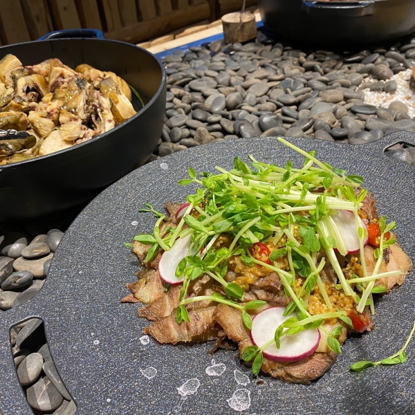 帆船造型帳篷挑高的一點壓迫感都沒有,裡面空間也很寬敞活動起來很舒服,露營活動裡還有手作體驗泰雅族的毛線織布,讓旅客麼更能貼近泰雅族的文化,好玩之餘又能增加知識!晚餐部分採自助式方式,很棒的將泰雅族文化融入在原住民特色料理中,烹飪出超具有特色的風味餐,能一邊享受特色美食,一邊欣賞壯麗山景,真的是一件超級幸福的露營之旅!