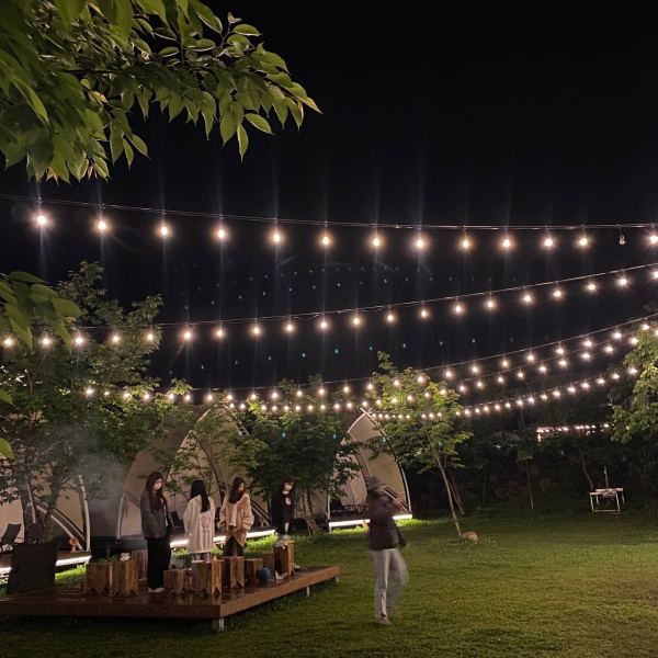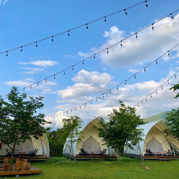 「蟬說:霧繞」位於新竹縣五峰鄉海拔1000公尺的地方上,周圍都會被雲霧環繞著,早晨起床能在夢幻般的雲海裡甦醒是一件幸福的事,在夜晚時營區內還會點燈,整個浪漫氛圍瞬間up up!