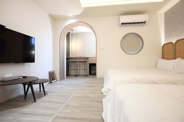 民宿裡的房間設計都很有特色,像是這間「拱門山景四人房」,房間裡有個很美的網美級拱門造型設計,拍照起來讓視覺上更顯厲害感,床的部分設計也很安全,不怕小朋友跌落導致受傷!