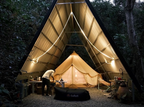 位於南投海拔680公尺深山裡,過去曾是原住民的獵場,營主將這邊重新打造成一處露營秘境,有別於其他豪華露營區,大家在同一片草地中紮營、空間較為擁擠,並運用樹林、草地等各種自然屏障,巧妙的隔絕各個營地,讓旅客仍保有大量隱私、擁有獨立的生活空間。