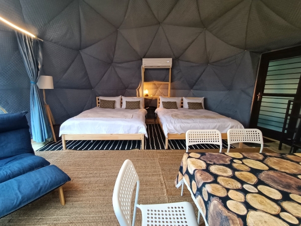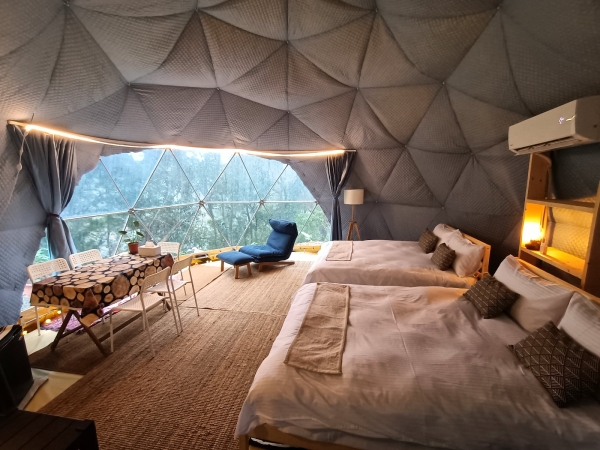 除了豪華帳篷外,還有提供森林小屋(2人及4人)及地球帳(4人), 寬敞舒適的空間,並附有獨立衛浴。
