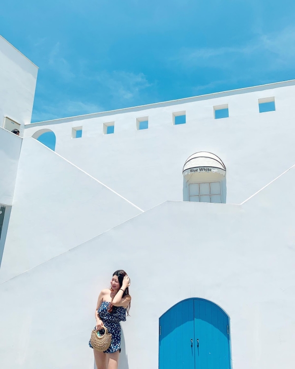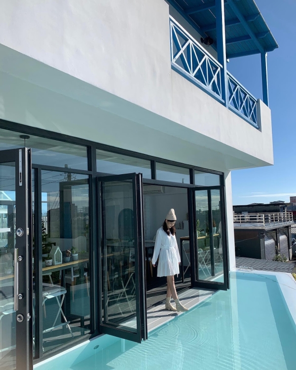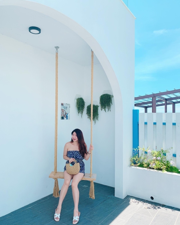 整棟建築在藍白色的交錯下看起來非常壯麗且壯觀,設計了一些小窗框和特別造型供門很有國外渡假風情,再搭配上浪漫鞦韆,使各位網美們的少女心大爆發,用最快的速度按下快門填滿了手機記憶體空間!