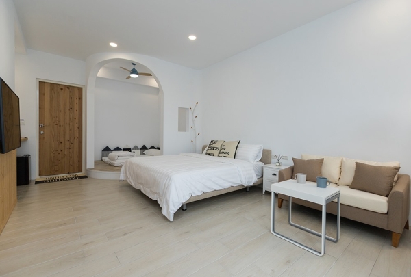 房間裡不只有溜滑梯,民宿主人還直接把「沙灘」搬進客房內,充滿著獨特的風格,不必曬太陽也能玩沙超幸福,晚上時還可坐在陽台上吹著徐風看著星星很是愜意!