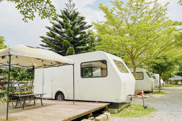 懶人、新手想要體驗露營,就來這座露營勝地吧!除了入住豪華露營車,享受免搭帳、輕裝備之外,還能入住小木屋套房,隔天還能爽玩輕艇、獨木舟等設施超有趣!