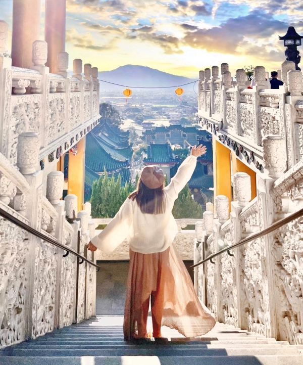 位於南投縣埔里鎮的寶湖宮天地堂地母廟,建築設計上也著顏色鮮明的碧瓦朱簷,在高處欣賞時搭配附近的綿延高山,看起來氣勢磅礡超級震撼。另一處網美景點就是地母廟的樓梯,站在中間再搭配上樓梯兩側的純白雕刻,拍出來的照片堪稱世界級超夢幻!