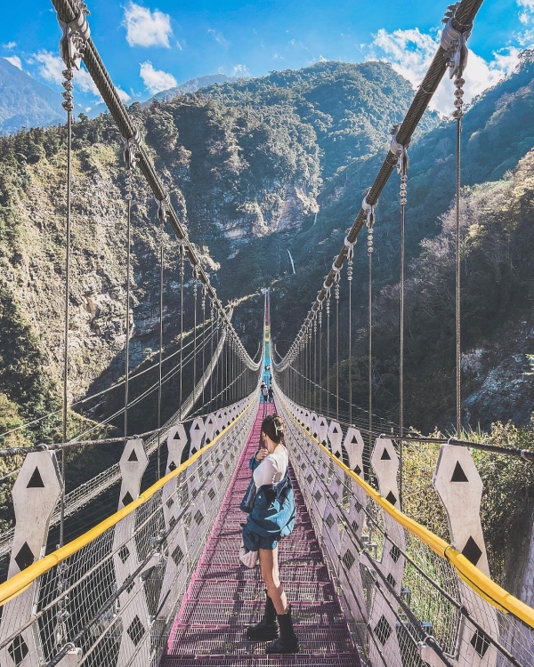 位於南投縣信義鄉的「雙龍瀑布七彩吊橋」,是全台最長、最高的吊橋,總共有342公尺,來回走一趟大概要20分鐘。吊橋是架設在大峭壁上的,連接著兩端的峽谷,腳下有著知名秘境「雙龍瀑布」。吊橋專門開放讓遊客們能夠漫步於高空中欣賞著如此壯麗的山美景,大膽的各位有興趣的話不訪可到此一遊體驗看看喔!