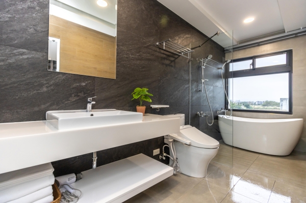 衛浴空間很寬敞且明亮,採用乾濕分離還有個大浴缸,可以讓小朋友泡個舒服的熱水澡洗去一整天揮灑出的陽光汗水,大人也能退去疲憊感放鬆身心!