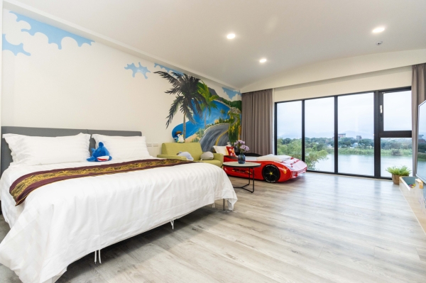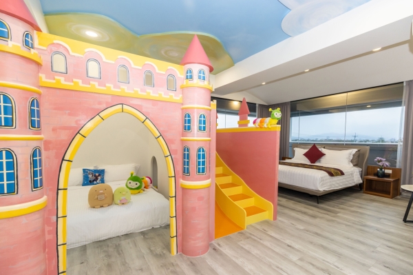 這間充滿夢幻的「粉紅色城堡公主房」,一定會讓每個有公主夢的小女孩們為之瘋狂,城堡裡還放了舒適的小床,睡在裡面更像是童話裡的公主一樣浪漫!還有這間ㄅㄨㄅㄨ車房,裡面有張專屬的「賽車床」超級酷,喜歡車車的小帥弟們不要錯了這間賽車房喔!房間裡有超大片的落地窗,小孩在旁玩耍,大人可透過窗戶欣賞著窗外美景,悠閒的渡過美好的假期!